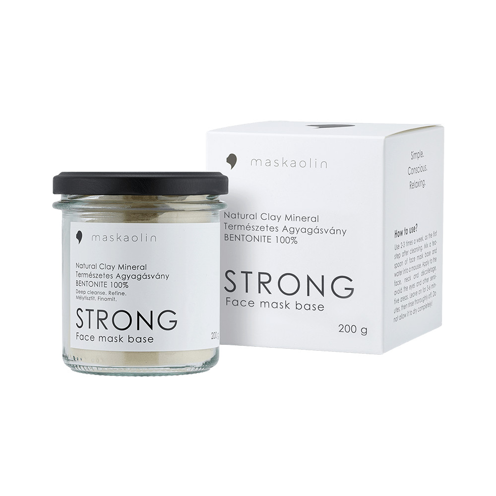 MASKAOLIN STRONG face mask base's powerful absorbency contributes to the effective removal of dirt, dead skin cells, secretions, and excess sebum while replenishing the skin with valuable minerals. It is proven to be a deep cleansing agent, regulates sebum production, and optimizes the skin's water balance. It regenerates and softens the skin, helping to restore its lost radiance. After just one use, you can see how it effectively reduces the visibility of large pores.