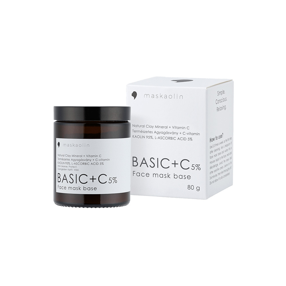 Maskaolin BASIC+C 5% gently cleanses the skin. It doesn't dry the skin due to its mild water-binding properties and soothes and rejuvenates with beneficial minerals to regain the skin's natural state. Its pure 5% vitamin C content allows your skin to regain its natural radiance. It fades pigmentation spots, boosts natural collagen production, and provides antioxidant protection. After removing the pack, the skin feels noticeably firm and soft.