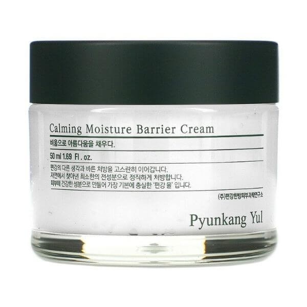 The Pyunkang Yul Calming Moisture Barrier Cream soothes hypersensitive skin and relieves irritation. Contains cica and tea tree extracts and ceramides. Fortifies the skin's protective layer and protects it in dry, cold weather. Use daily to achieve a soft, hydrated, and plump complexion.