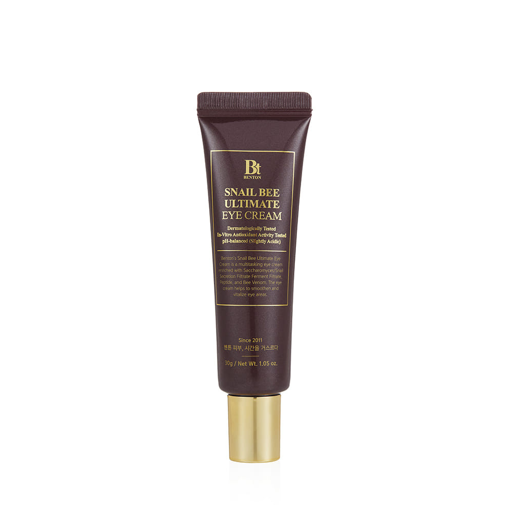 The Benton Snail Bee Ultimate Eye Cream restores radiance and elasticity to the skin around the eyes with snail secretion filtrate and premium fermented ingredients. It strengthens the skin's protective layer with peptides, 17 types of amino acids, and ceramides. It nourishes and provides elasticity with niacinamide and adenosine to tired, dull skin around the eyes.